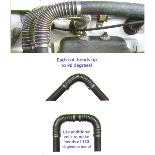 THIS STAINLESS STEEL COIL FITS OVER THE HEATER HOSE AND IS BENT ALONG WITH THE HOSE AND ELIMINATES KINKS IN THE HOSE WHERE TIGHT TURNS WERE MADE BY THE FACTORY BY USING A MOULDED HOSE.