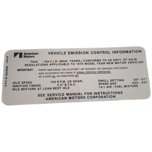 1970 199 6 CYLINDER ENGINE COMPARTMENT EMISSIONS DECAL