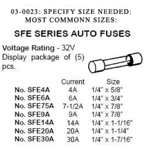 PLEASE SPECIFY THE FUSE TYPE YOU NEED ("SFE-20", "AGC-5" ETC).