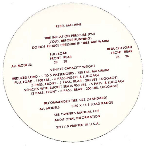 1970 REBEL MACHINE AIR PRESSURE DECAL