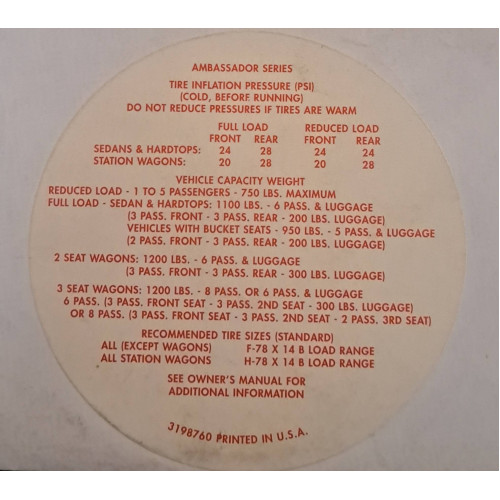 1967-70 TIRE INFLATION DECAL.