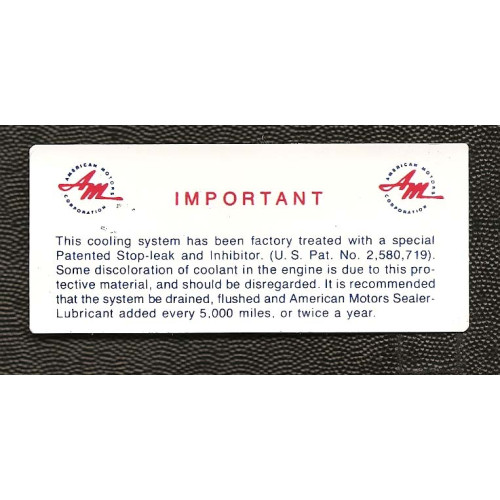 1961-1964 COOLANT MAINTENANCE INSTRUCTION DECAL