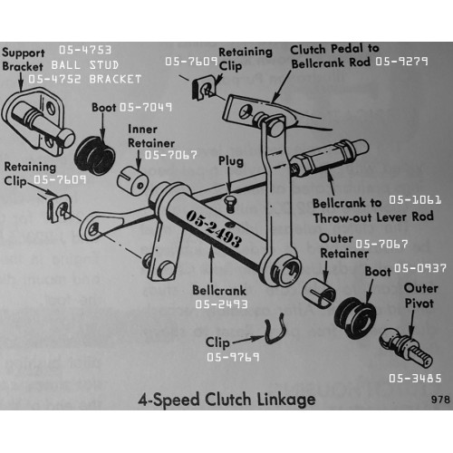 1967-1969 V8 MODELS, CLUTCH CROSSBEAM (Z-BAR) PIVOT BALL STUD
